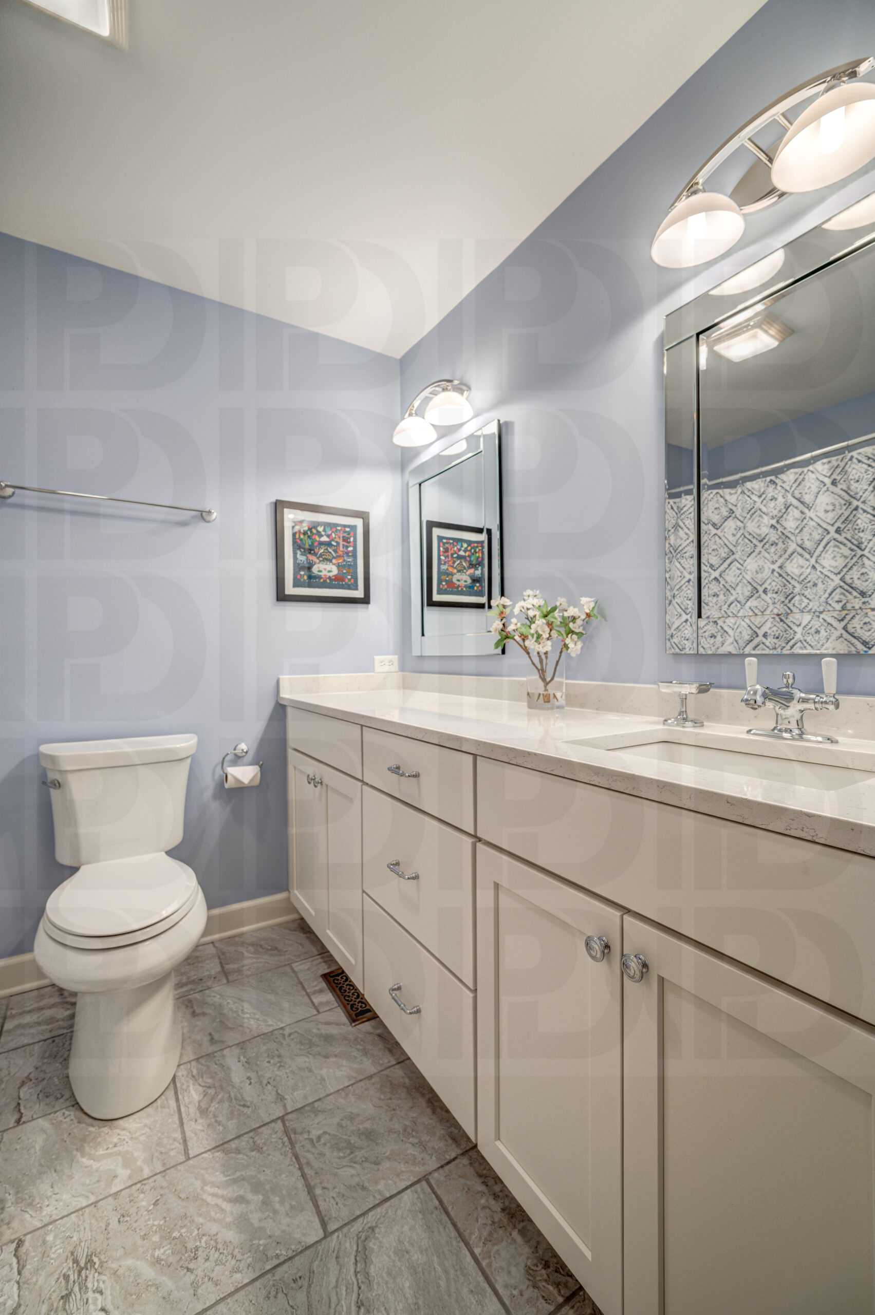 For this project, we updated all five of the bathrooms on a modest budget to contemporary colors, classic, timeless styles, and embellished features for flexibility.