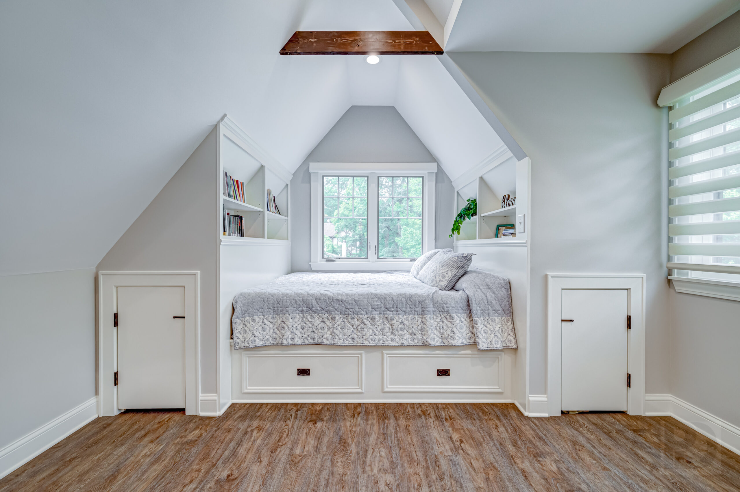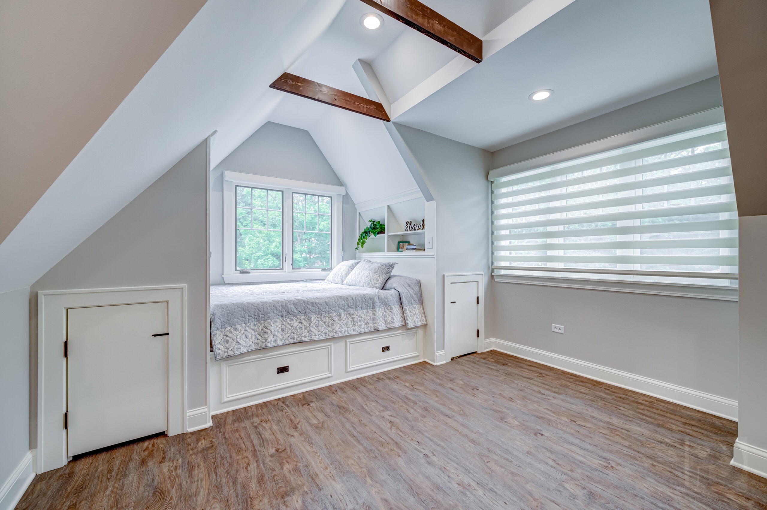 Our client desired to build out their third floor to have a get-away space and more fully utilize their attic. They reached out to us on a neighbor’s recommendation. We developed a concept vision with an open, durable, airy, casual feel;  full of storage and complete with a secret passage and door!
