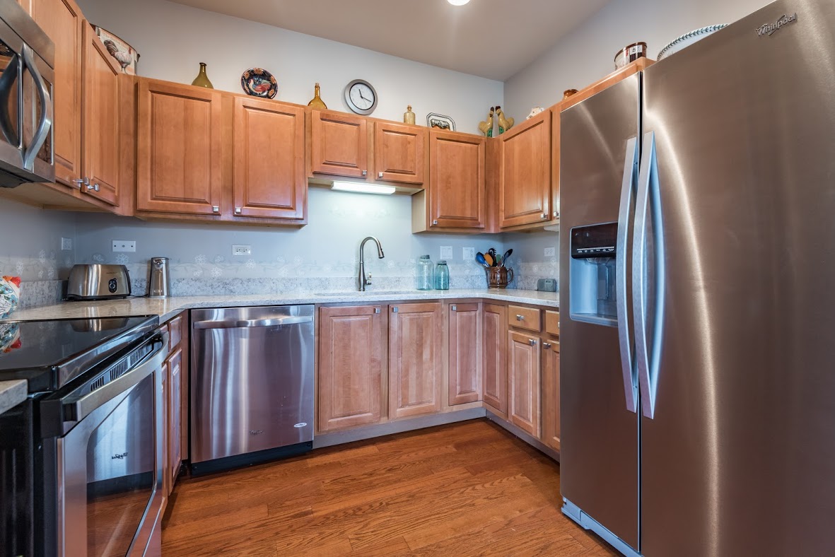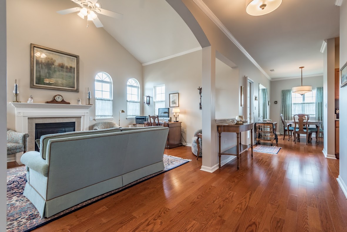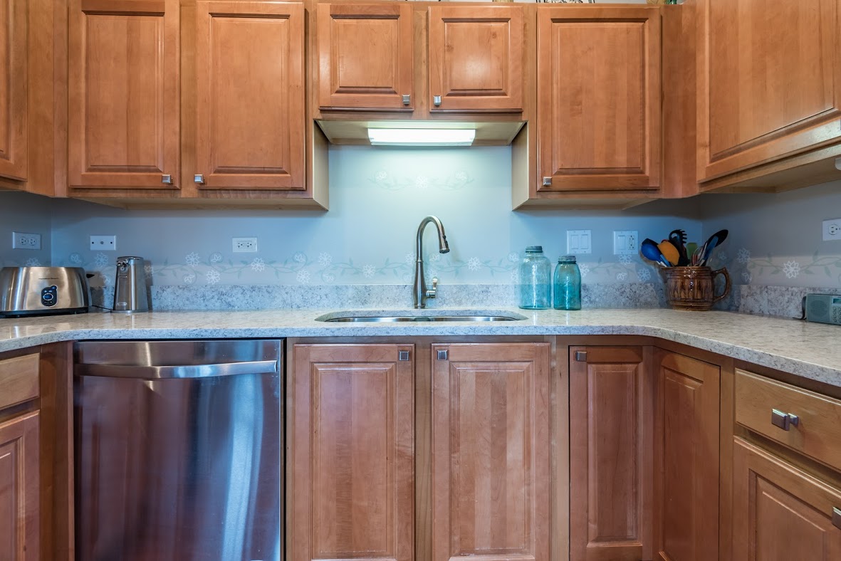 The client sold their large home and moved to a retirement community. For the remodeling, they desired a comfortable relaxing but durable atmosphere with 2 dogs and visiting grandchildren. The first challenge was the soft wood flooring which showed the scratches from the dogs. After researching new flooring, a high durable lament wide individual plank flooring with a 30 year guarantee was installed. A rustic dark color was chosen.