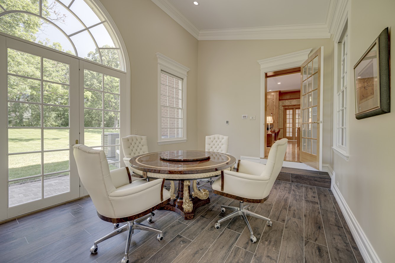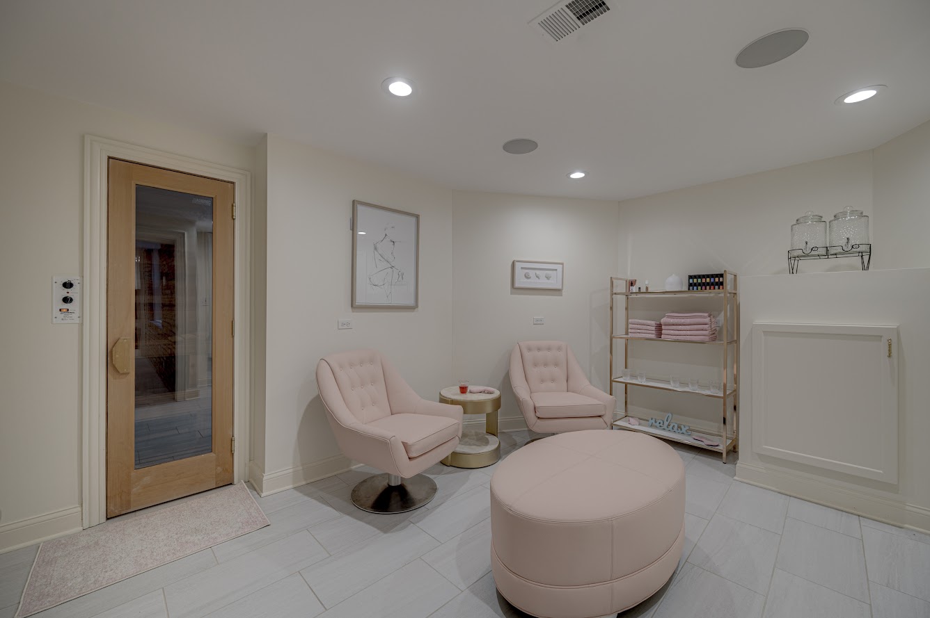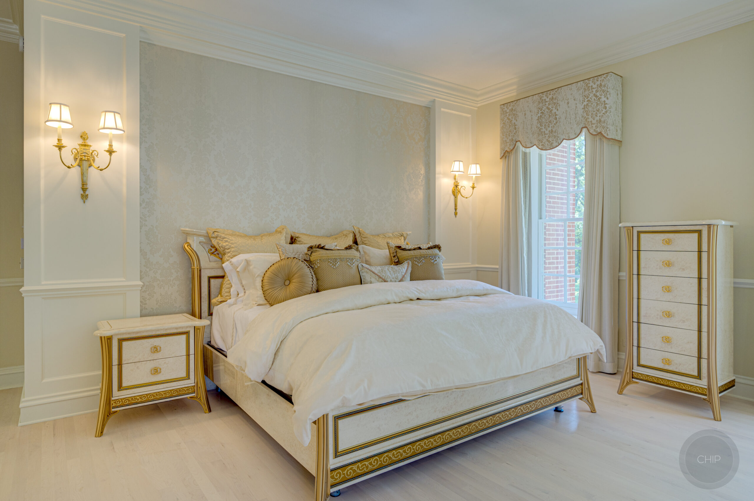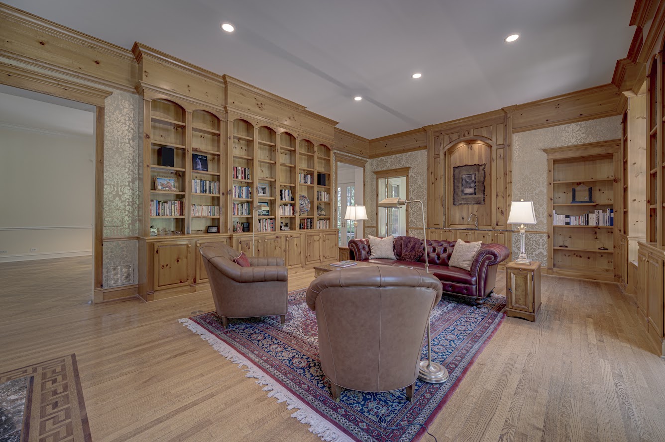 Our clients sought to update their newly purchased home in Wheaton, IL. He is from Wheaton, IL,  and she is from the UK. His business takes them to London often. The home is a traditional style Georgian home adjacent to Cantigny estate and backs up to Cantigny golf course, resembling the style of the McCormick mansion. Our client loves classic design and wants features resembling one of their favorite places: the Dorchester hotel in London. The project encompassed a complete overhaul of the entire first floor including Living Dining, Library, office Kitchen, Laundry and Powder rooms. The Master suite on the second floor was completely remodeled and updates complete in the 3 bedrooms. The lower level included an update of the open area with complete remodel of the media area, adding a new bar area and creating a spa area in the former large electric closet. We actively worked with our client to update the exterior as part of the project.