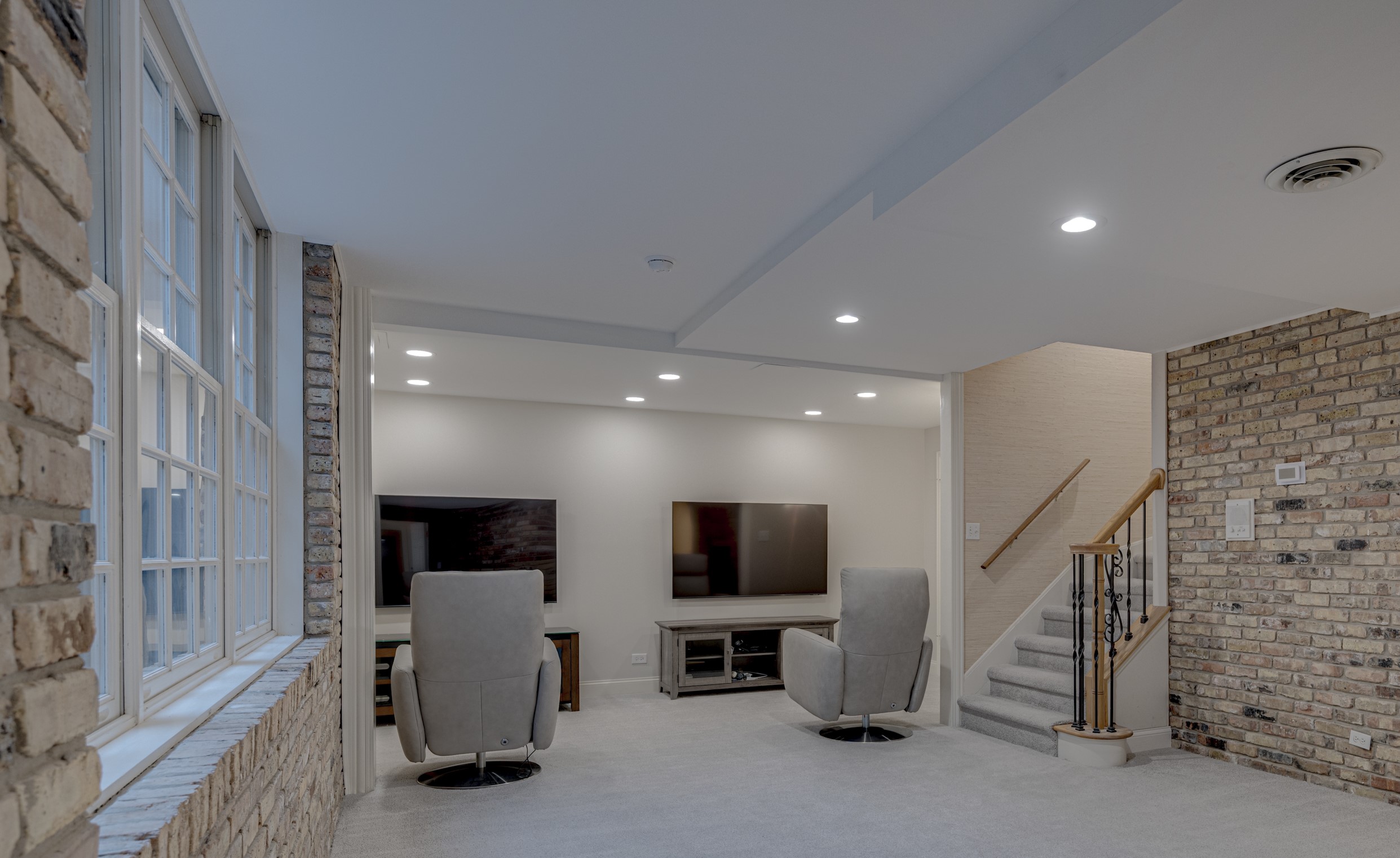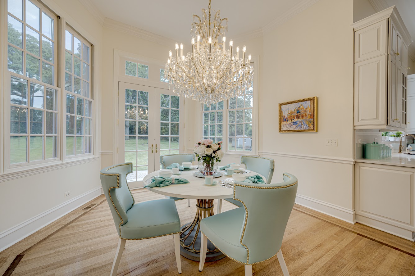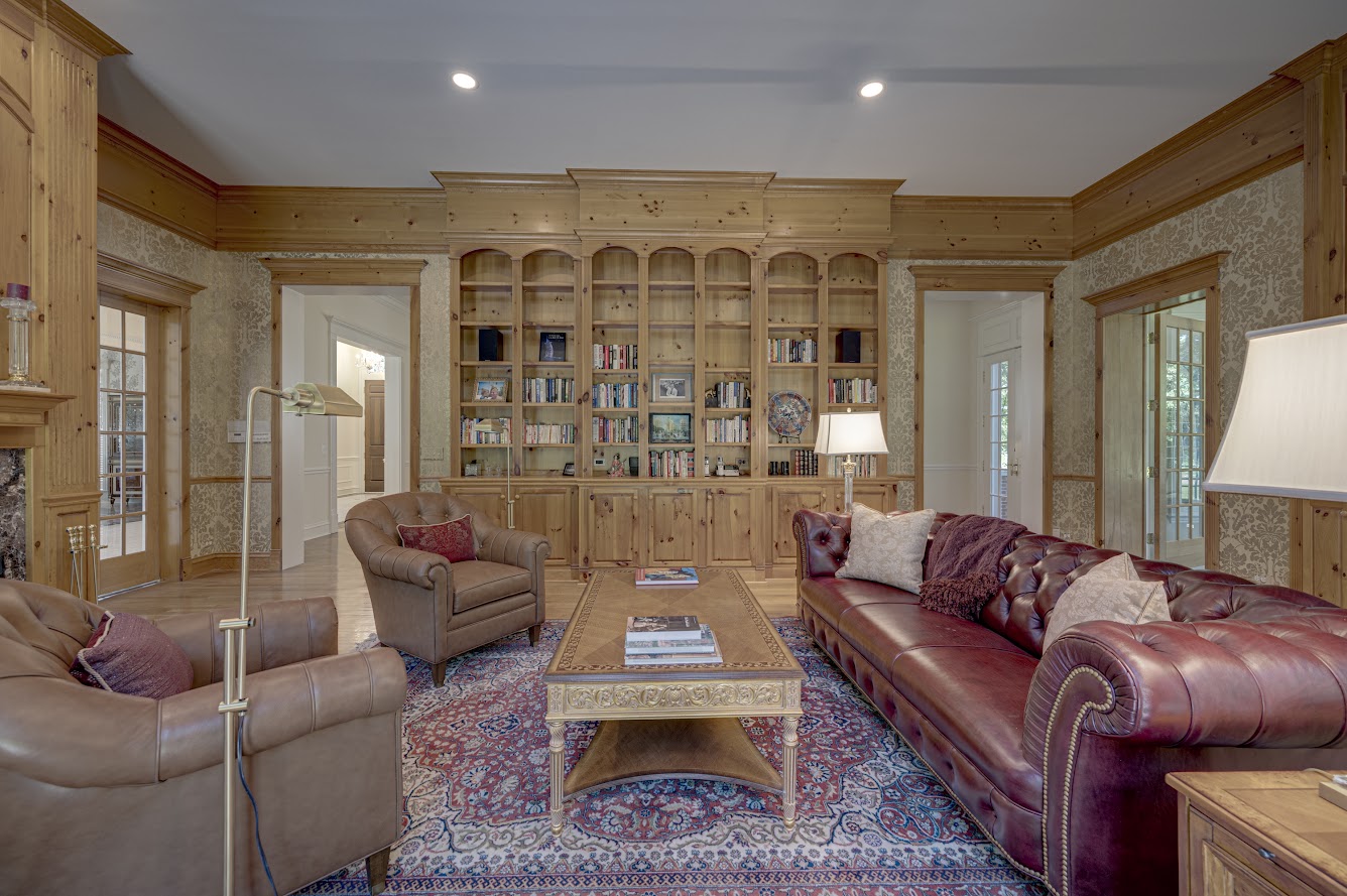 Our clients sought to update their newly purchased home in Wheaton, IL. He is from Wheaton, IL,  and she is from the UK. His business takes them to London often. The home is a traditional style Georgian home adjacent to Cantigny estate and backs up to Cantigny golf course, resembling the style of the McCormick mansion. Our client loves classic design and wants features resembling one of their favorite places: the Dorchester hotel in London. The project encompassed a complete overhaul of the entire first floor including Living Dining, Library, office Kitchen, Laundry and Powder rooms. The Master suite on the second floor was completely remodeled and updates complete in the 3 bedrooms. The lower level included an update of the open area with complete remodel of the media area, adding a new bar area and creating a spa area in the former large electric closet. We actively worked with our client to update the exterior as part of the project.