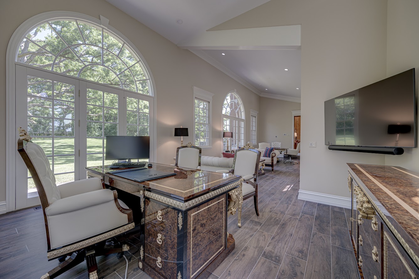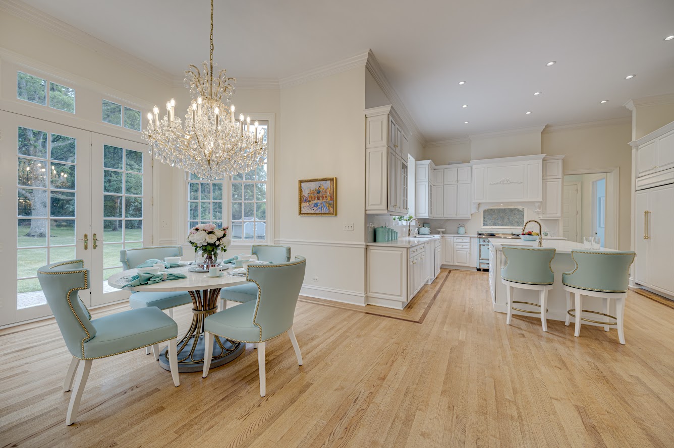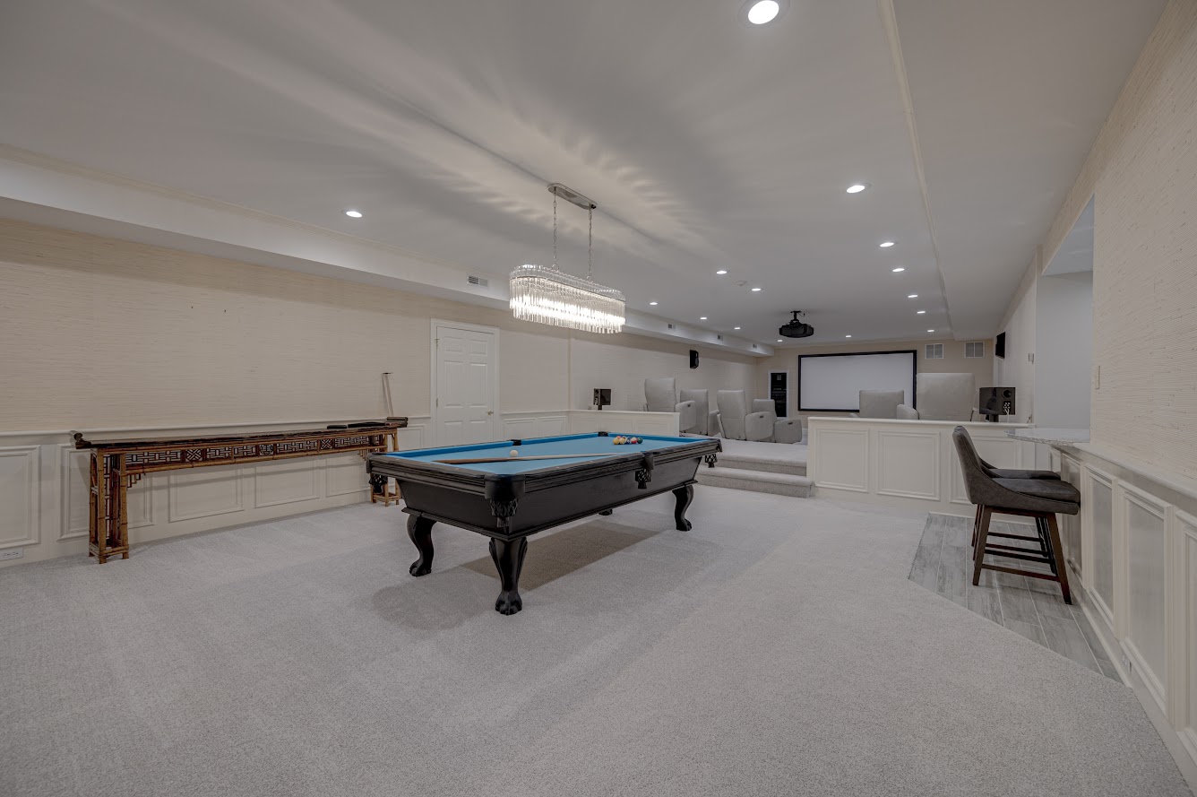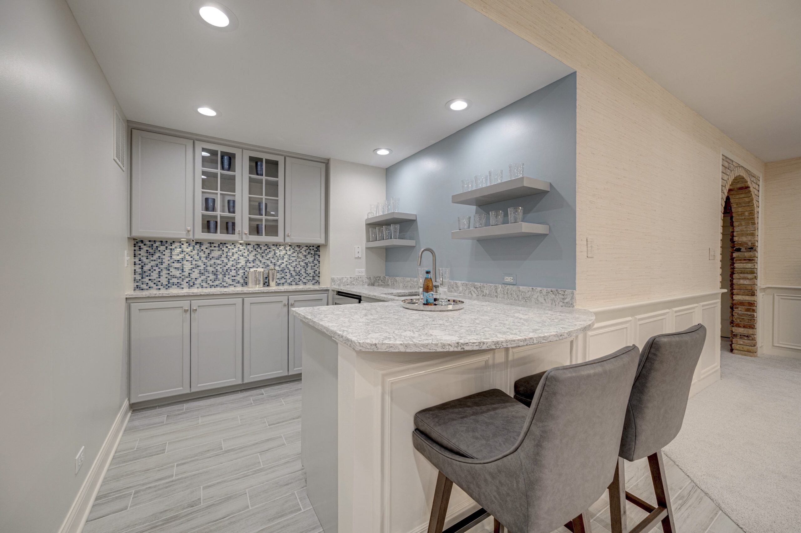 Our clients sought to update their newly purchased home in Wheaton, IL. He is from Wheaton, IL,  and she is from the UK. His business takes them to London often. The home is a traditional style Georgian home adjacent to Cantigny estate and backs up to Cantigny golf course, resembling the style of the McCormick mansion. Our client loves classic design and wants features resembling one of their favorite places: the Dorchester hotel in London. The project encompassed a complete overhaul of the entire first floor including Living Dining, Library, office Kitchen, Laundry and Powder rooms. The Master suite on the second floor was completely remodeled and updates complete in the 3 bedrooms. The lower level included an update of the open area with complete remodel of the media area, adding a new bar area and creating a spa area in the former large electric closet. We actively worked with our client to update the exterior as part of the project.
